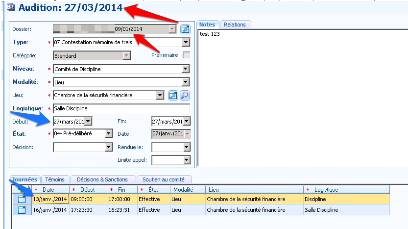 In this example, a customer's system is set to French. When 'Short date' format is changed in Windows Region and Language settings, the display is correct (blue arrows), but Rn_Descriptor is incorrect (red arrows):